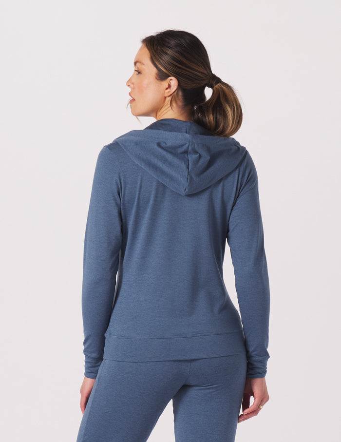 MARBLED JERSEY tone on tone fabric might just be our softest yet. This mid to lightweight hoodie is the perfect second layer and is so soft and comfy you could wear anywhere at any time. Layer it over your workout wear or just wear to look stylish. Effortlessly blends into your activewear and loungewear collection.
