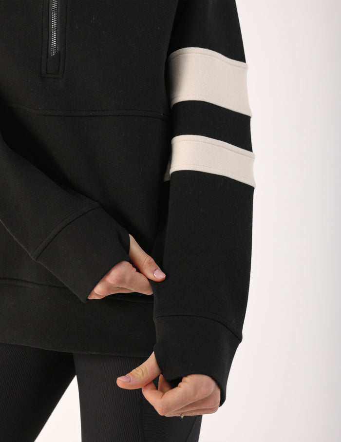 The sporty look designed for everyday wear. This super oversized piece reinvents the trending scuba look. Signature COTTONTECH fabric is durable and flexible with a cushion-like sensation, and compliments the functional elements of the garment. Complete with a funnel neck, quarter zip, seam details, and perfectly-sized front pocket.