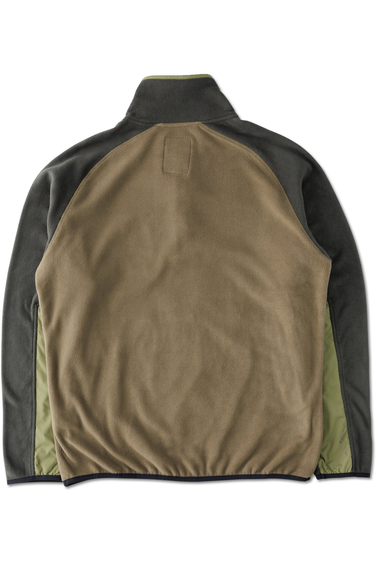 This polar fleece has it all in a lightweight, versatile, and stylish package. Casual fit, half placket mock neck fleece pullover with snap closure, elastic binding on top collar edge, sleeve cuffs and bottom opening, single chest pocket, lower zip pockets, reinforced woven fabric overlay at elbows.
