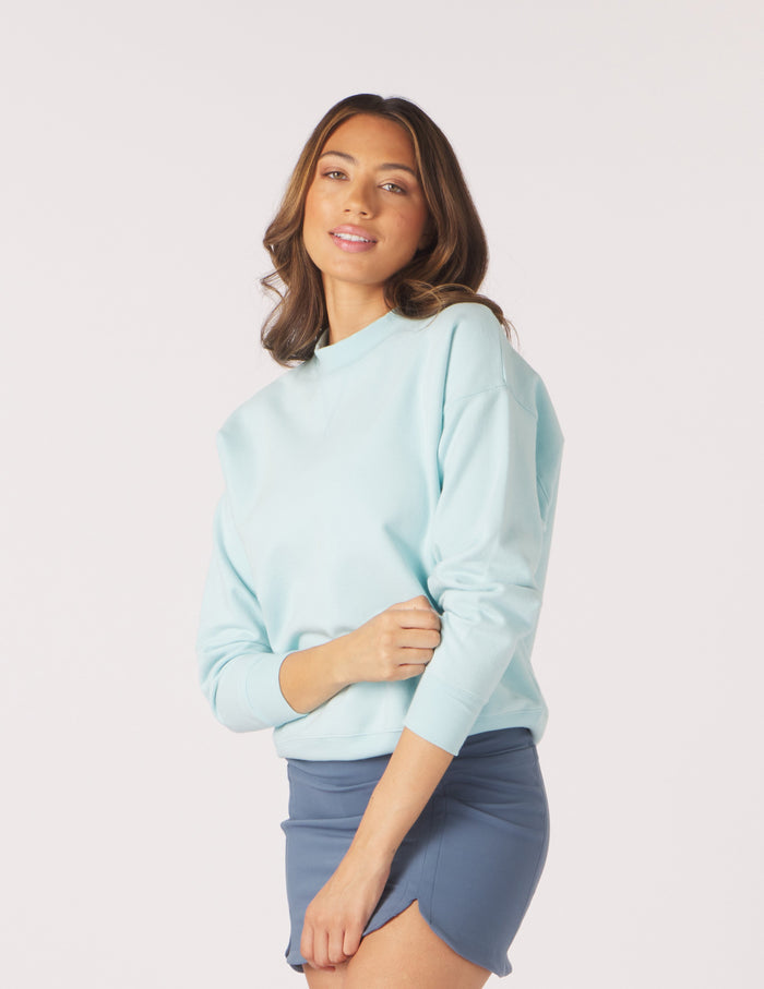Not your average hand me down sweatshirt! The luxurious modal spandex yarns from our PLUSH FLEECE fabric now blend with cotton yarn for a more structured and vintage cut. A velvety hand on the outside and double brushed interior make this crewneck a dream to wear.